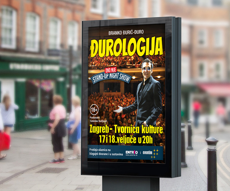 KLIJENT Đurologija CILJ PROJEKTA Grafički dizajn i priprema za tisak B1 i B2 plakata za “Đurologiju” u Zagrebu 17. i 18. veljače u Tvornici.